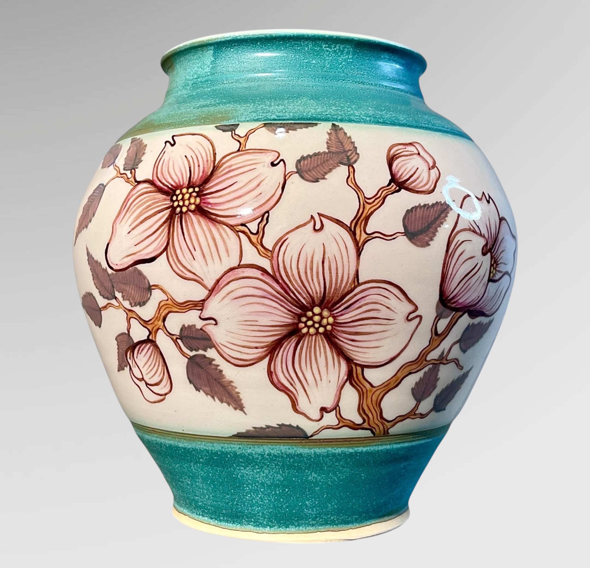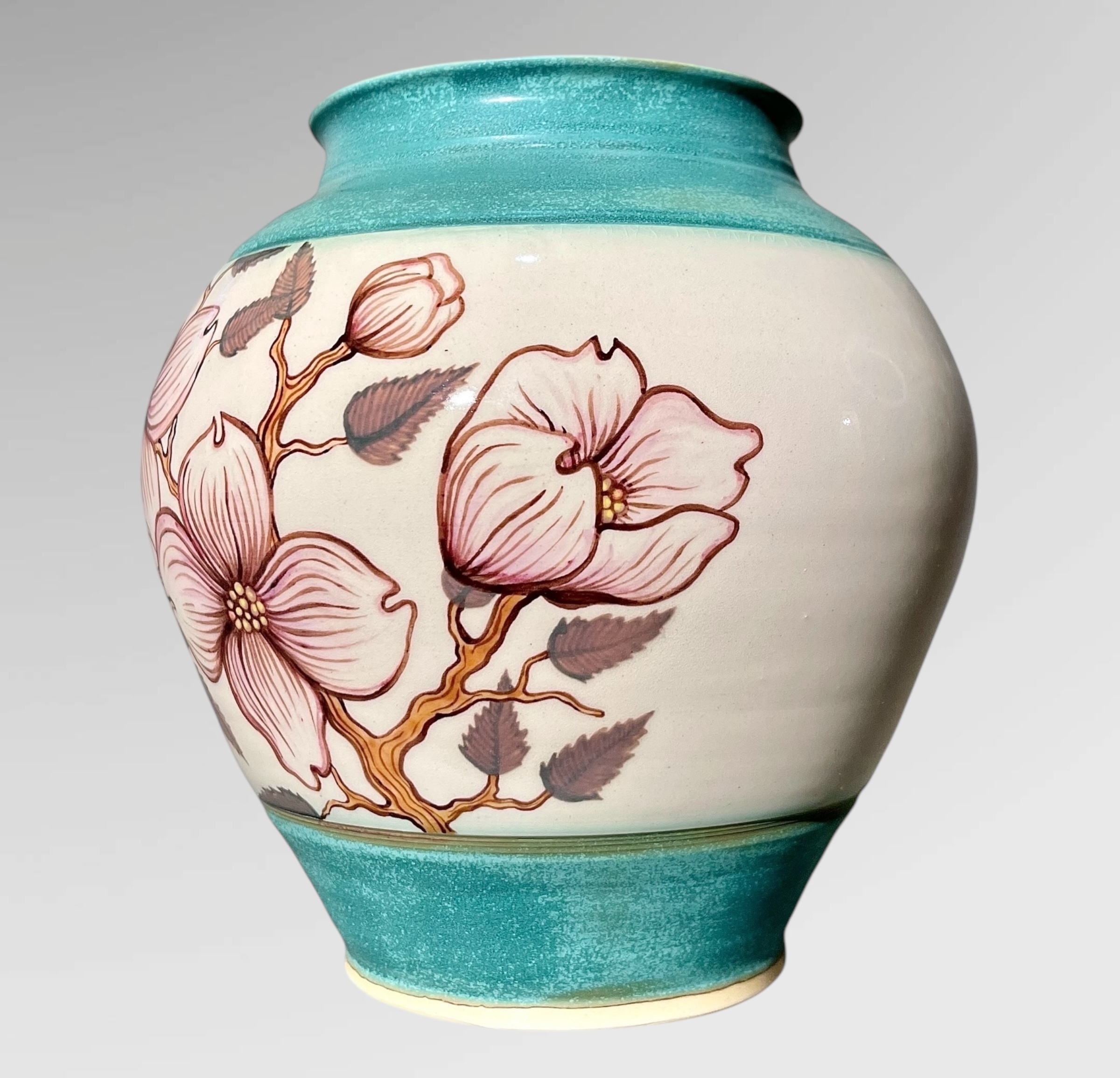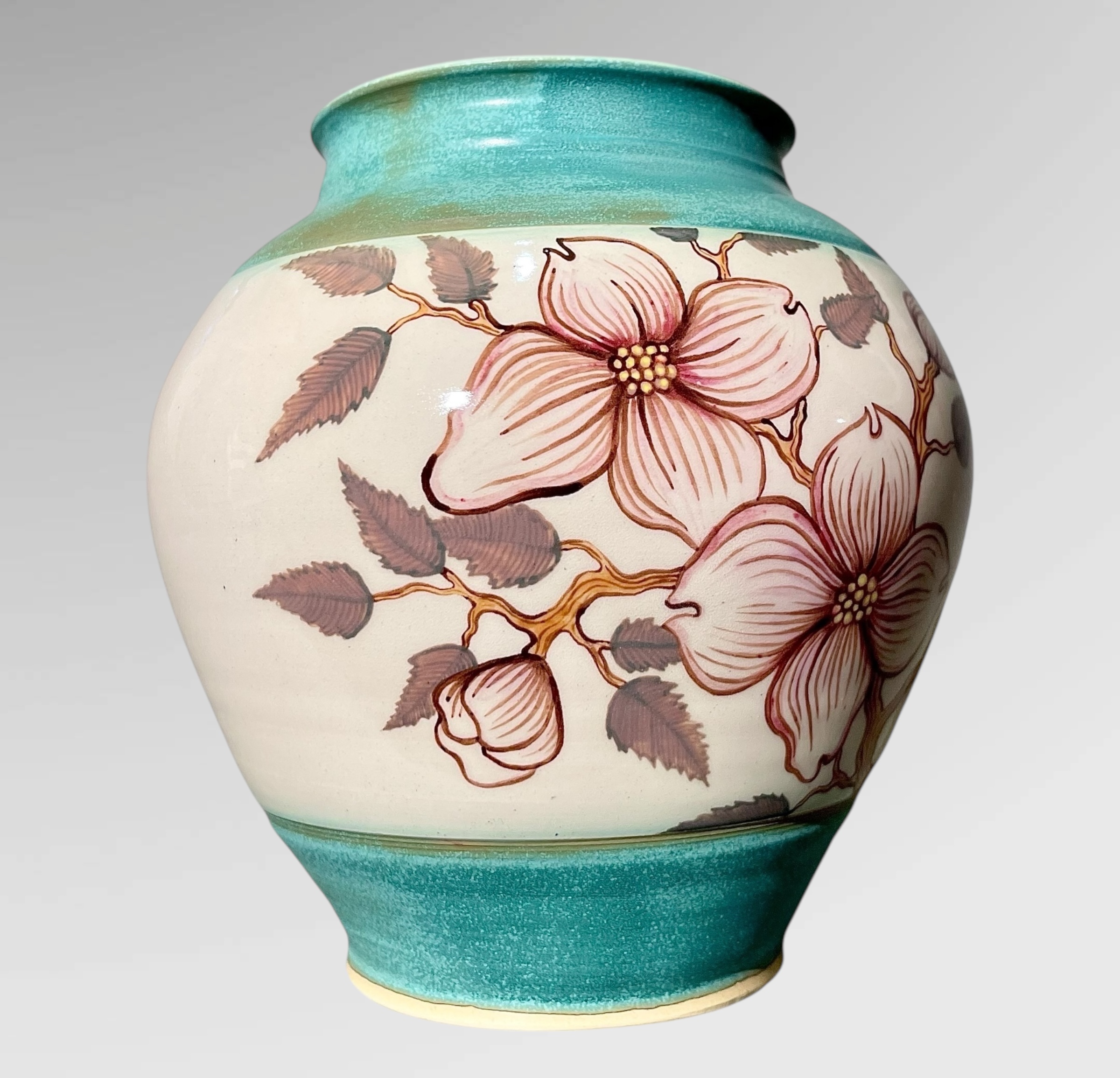 Hand Painted Ceramic Vase Depicting Dogwood Flower Blossoms